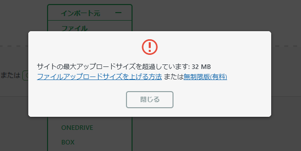 ご契約のレンタルサーバーによってインポートできるデータ容量の制限に違いがあるため、稀にインポートできないことがあります。