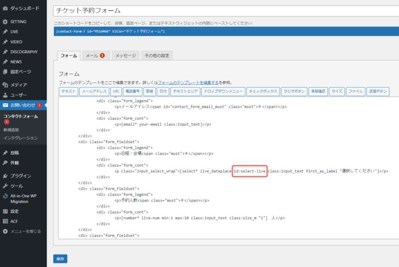お問い合わせ→チケット予約フォーム→フォームタブ