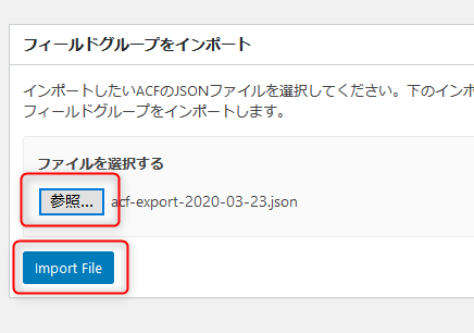 参照から、ダウンロードいただいたacf-で始まる拡張子.jsonのファイルを選択