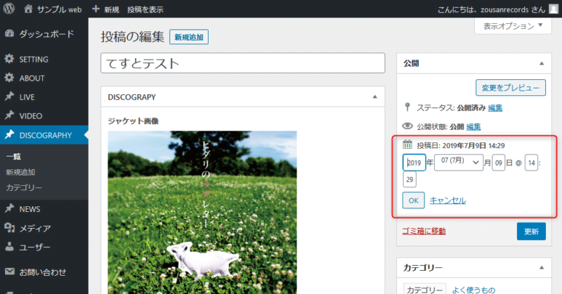 主にzousanrecords PRO(有料版)に関してですが、DISCOGRAPHYページの仕様変更に伴い、並び替え設定の変更が必要です。管理画面メニュー