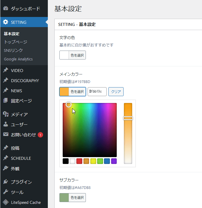 zousanrecordsPOPと同様に管理画面で
