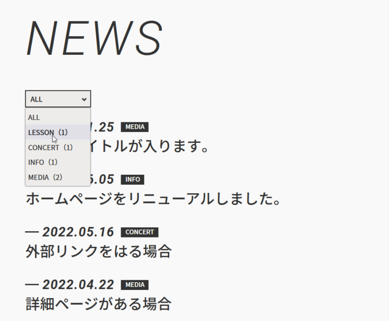 zousanrecordsPROにはなかった機能として「NEWS」ページにカテゴリー分け機能を搭載しました。