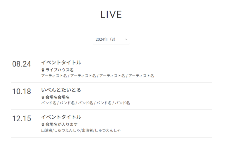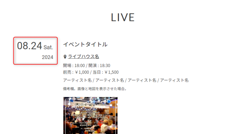 同様にTICKETページの「チケット予約フォーム」の見出しも無くしました。