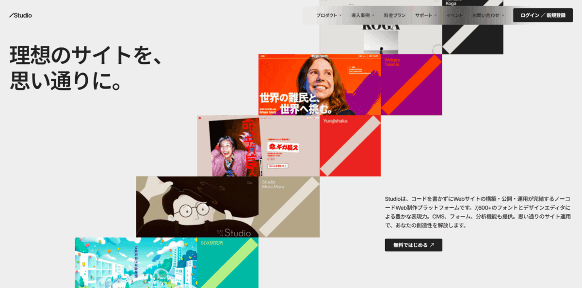 Studio( https://studio.design/ja )はコードを書かずにWebサイトが作れるクラウド型のノーコード制作ツールです。ドラッグ&ドロップで直感的に操作でき、初心者にも人気です。