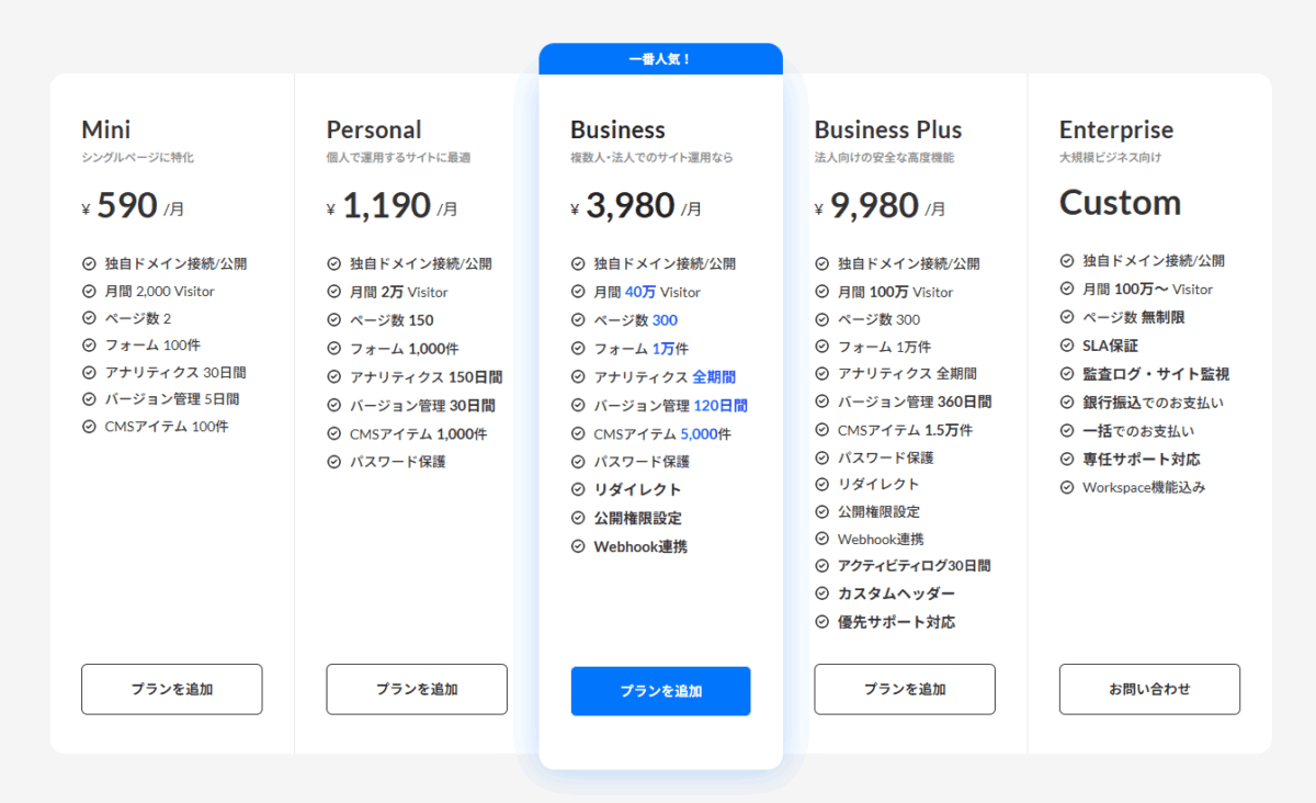Personalプラン以上ですとコスト面でWordPressとさほど変わりませんので、機能面を考慮するとWordPressの方がおすすめです。