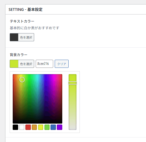 管理画面にてテキストカラーと背景カラーを選択できます。