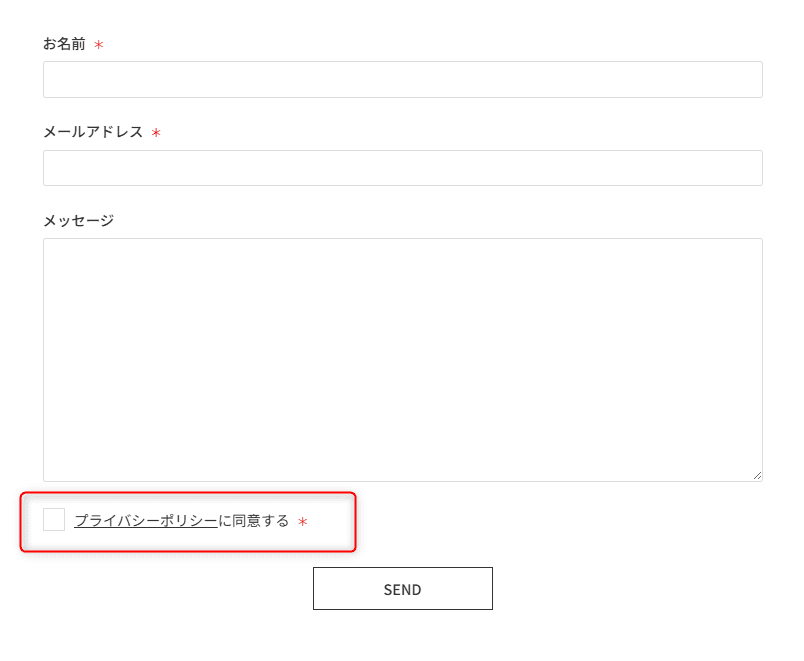 また、昨今のセキュリティ意識の高まりや個人情報保護の重要性を踏まえ、デフォルトで「プライバシーポリシー」ページを追加。各フォームに「プライバシーポリシーに同意する」項目を追加いたしました。