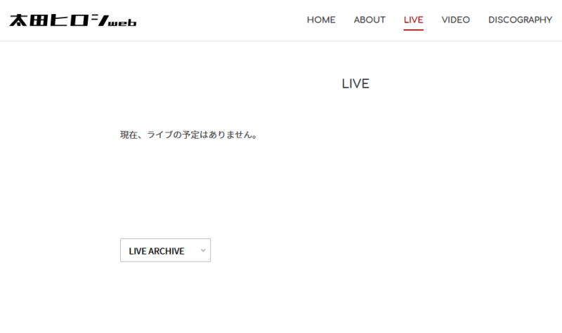 ライブ予定がない場合は、これも自動で「現在、ライブの予定はありません。」の文言が表示されます。