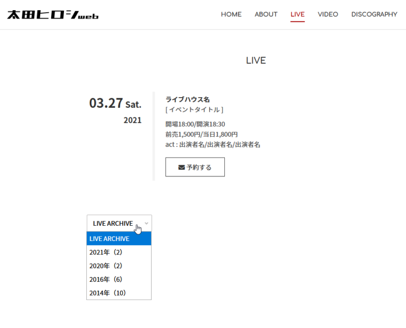 有料版では過去のライブ情報は「LIVE ARCHIVE」から年別で表示されます。(月別表示に変更したい場合は→こちら)